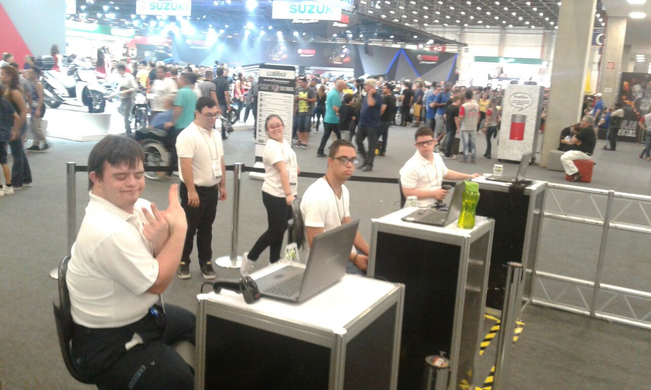 Todos os nossos dezoito Atendentes Muito Especiais formados neste primeiro ano de atividades foram contratados para trabalhar no SALÃO DUAS RODAS em sistema de rodízio. Se revezaram em vários postos de controle de acesso do evento, trabalhando com profissionalismo, dedicação e seriedade durante quatro dos sete dias do evento, ocorrido no SÃO PAULO EXPO, na Rodovia Imigrantes, km 1,5, zona sul da capital paulistana.